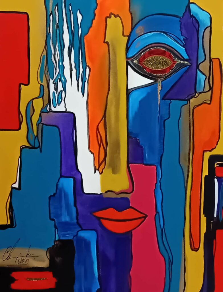 Vous trouverez ces œuvres sur toile à l’huile, parfois incrustées de cristaux swarovski, parfois de tissus précieux.